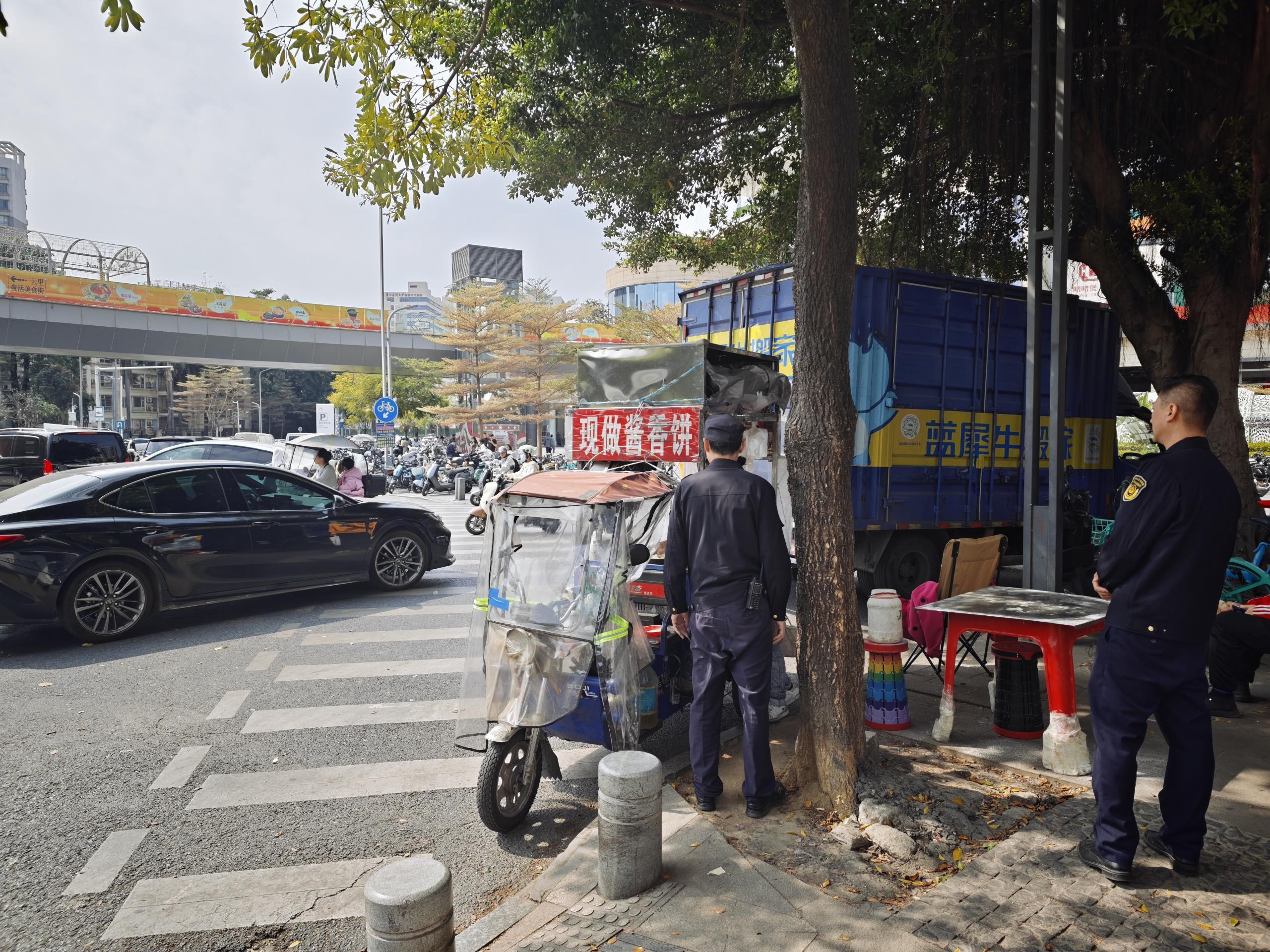 据介绍,白云区城管局早在开学的一周前,就联合属地镇街开展全区校园周边市容秩序专项整治行动,以校园周边500米核心圈为重点,实施“定人、定岗、定责”管理,通过动态巡查与定点值守相结合,集中整治流动摊贩占道经营、非机动车乱停放等行为,共整治校园周边占道经营150余宗,有效维护校园周边环境干净整洁有序。开学当日,执法人员均提前到岗,确保保障工作有的放矢,以城市管理的“开门红”助力教育事业“开门稳”。